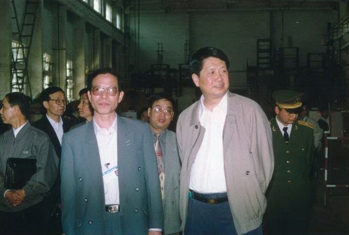 5、1997年4月16日,時(shí)任江西省省長(zhǎng)舒惠國(guó)(右)在市委書(shū)記、市長(zhǎng)丁耀民的陪同下來(lái)廠調(diào)研