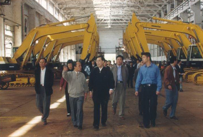 6、1999年10月18日,時(shí)任省長(zhǎng)舒圣佑(左3)在市長(zhǎng)曹二俚的陪同下來(lái)廠調(diào)研