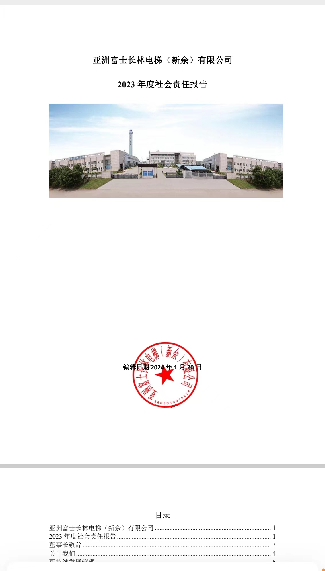 目前,富士長(zhǎng)林電梯(新余)有限公司已完成2023年社會(huì)責(zé)任報(bào)告及溫室氣體排放自盤溫室氣體自盤報(bào)告。