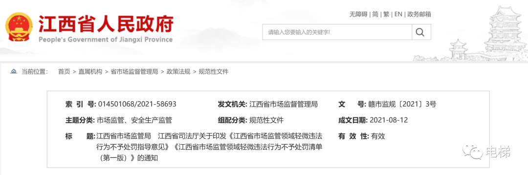《江西省特種設備安全條例》第三十六條:“電梯維護保養單位應當按照下列規定向設區的市人民政府特種設備安全監督管理部門履行網上告知義務:……”