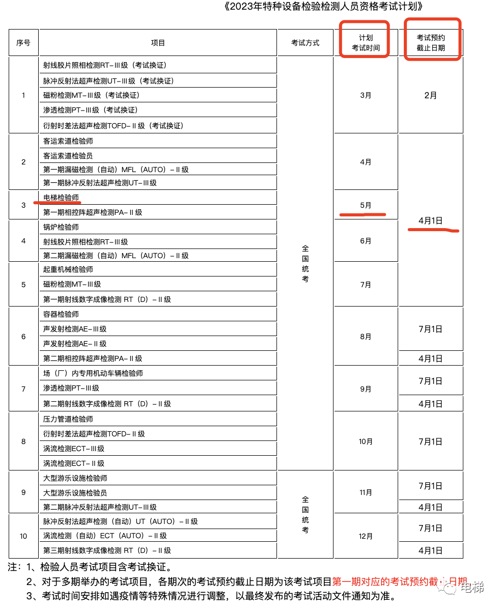 2023全國電梯檢驗師5月份考試,抓緊預約!