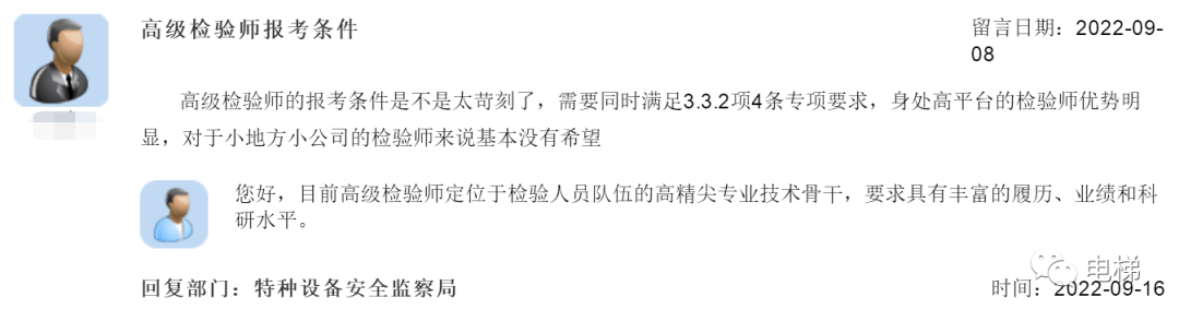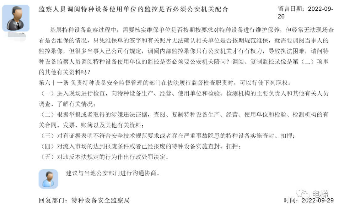 總局回復:高級檢驗師報考條件;關(guān)于2022年電梯檢驗師考試;監(jiān)察人員是否有權(quán)利調(diào)閱物業(yè)監(jiān)控;(五十九)