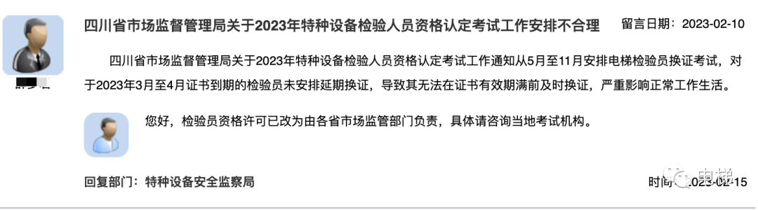 以下為正文: 01 問:退休的高檢師可以當檢驗師使用嗎 總局回復:聘用人員可以從事檢驗工作。 02 問:四川省市場監督管理局關于2023年特種設備檢驗人員資格認定考試工作安排不合理