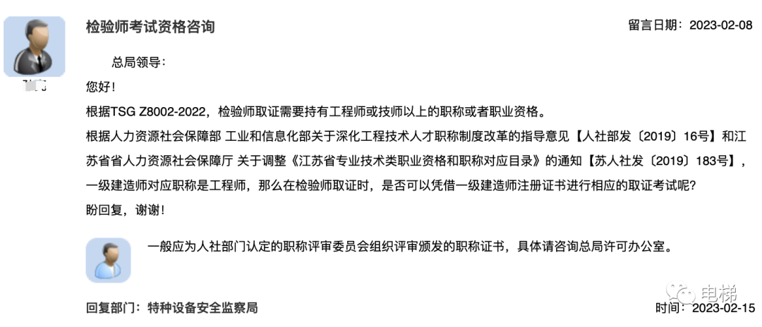 退休的高檢師可以當電梯檢驗師使用嗎?總局回復!(第六十)
