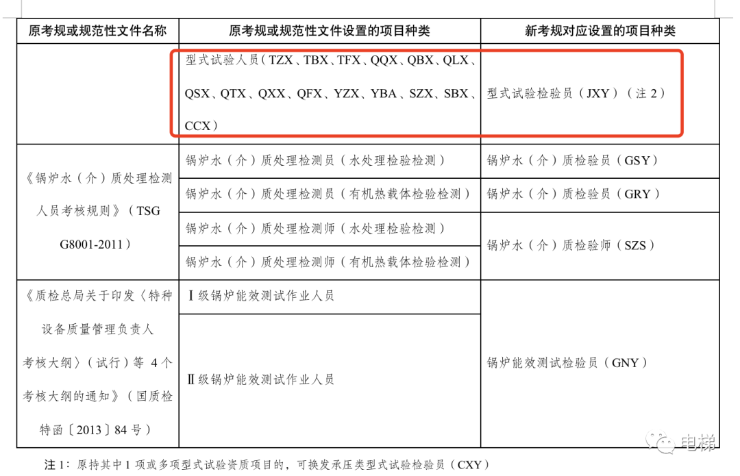 注2:原持其中1項或多項型式試驗資質項目的,可換發機電類型式試驗檢驗員(JXY) |