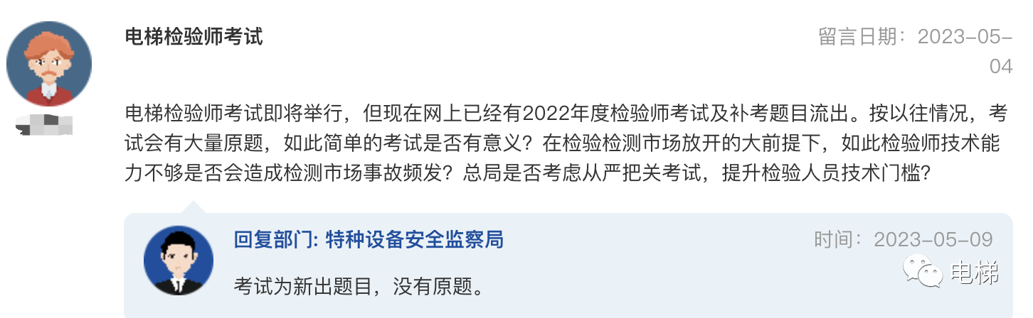 電梯檢驗師考試即將舉行,但現(xiàn)在網(wǎng)上已經(jīng)有2022年度檢驗師考試及補考題目流出。按以往情況,考試會有大量原題,如此簡單的考試是否有意義?在檢驗檢測市場放開的大前提下,如此檢驗師技術(shù)能力不夠是否會造成檢測市場事故頻發(fā)?總局是否考慮從嚴把關(guān)考試,提升檢驗人員技術(shù)門檻?