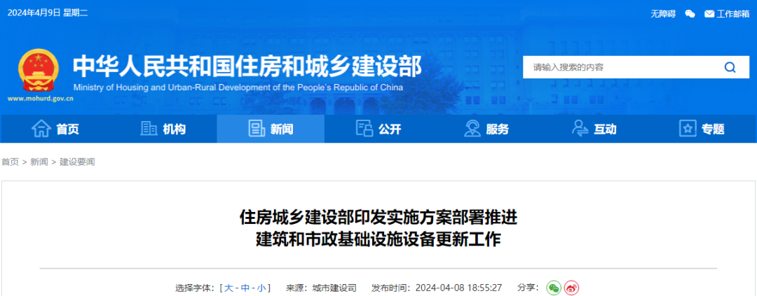 日前《住房城鄉建設部印發《推進建筑和市政基礎設施設備更新工作實施方案》》,內容如下: