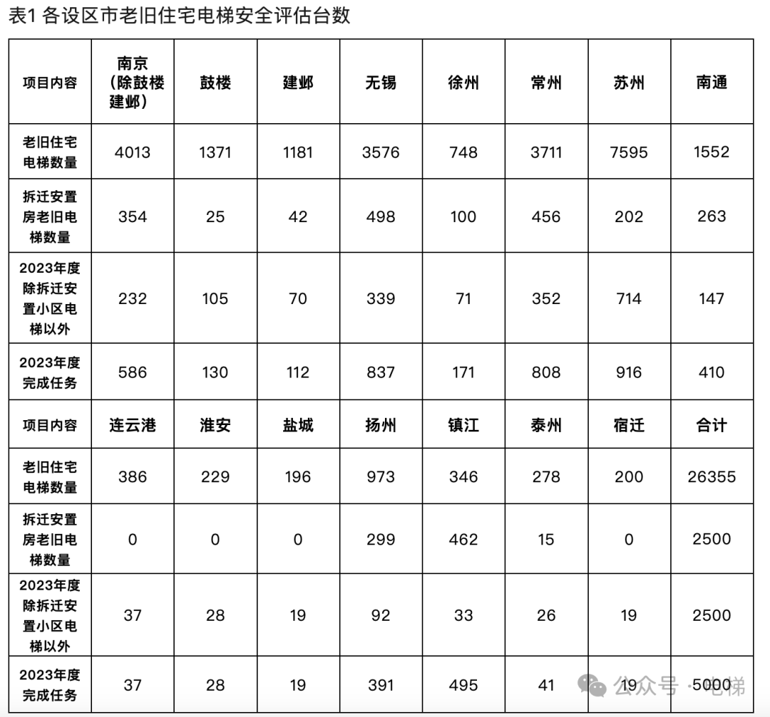 我們這里就是列舉了深圳這個例子,其實很多省份最近幾年都在推動電梯安全評估。再比如江蘇,去年發布的電梯安全評估通知中,全省的老舊電梯臺數都統計得清清楚楚。